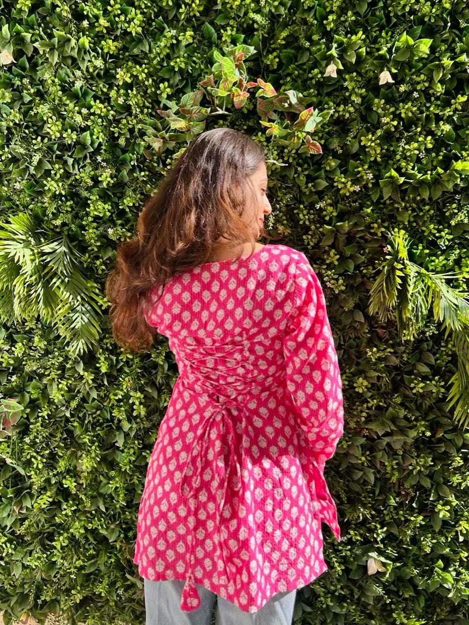 Featuring a flattering corset tie-back and full sleeves, it perfectly blends comfort with a touch of modern femininity.