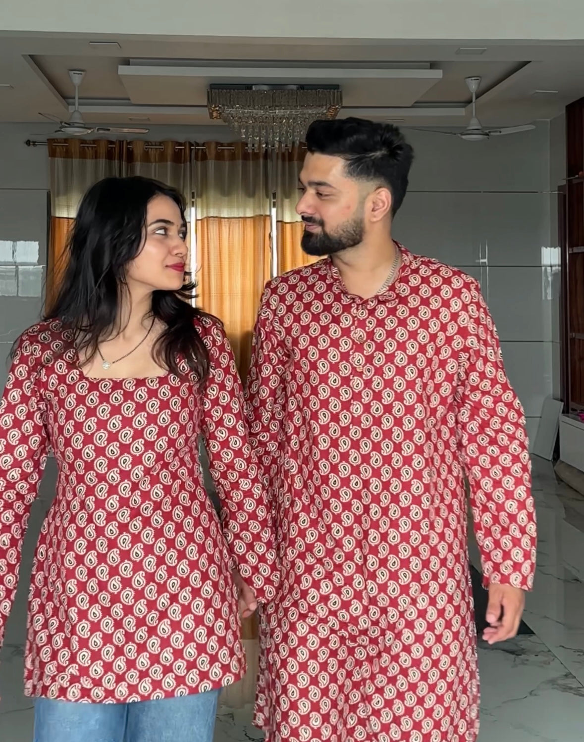 • Style Tip: She can enhance it with chaand baalis and dewy makeup, while he should go for a classic watch and brown loafers.