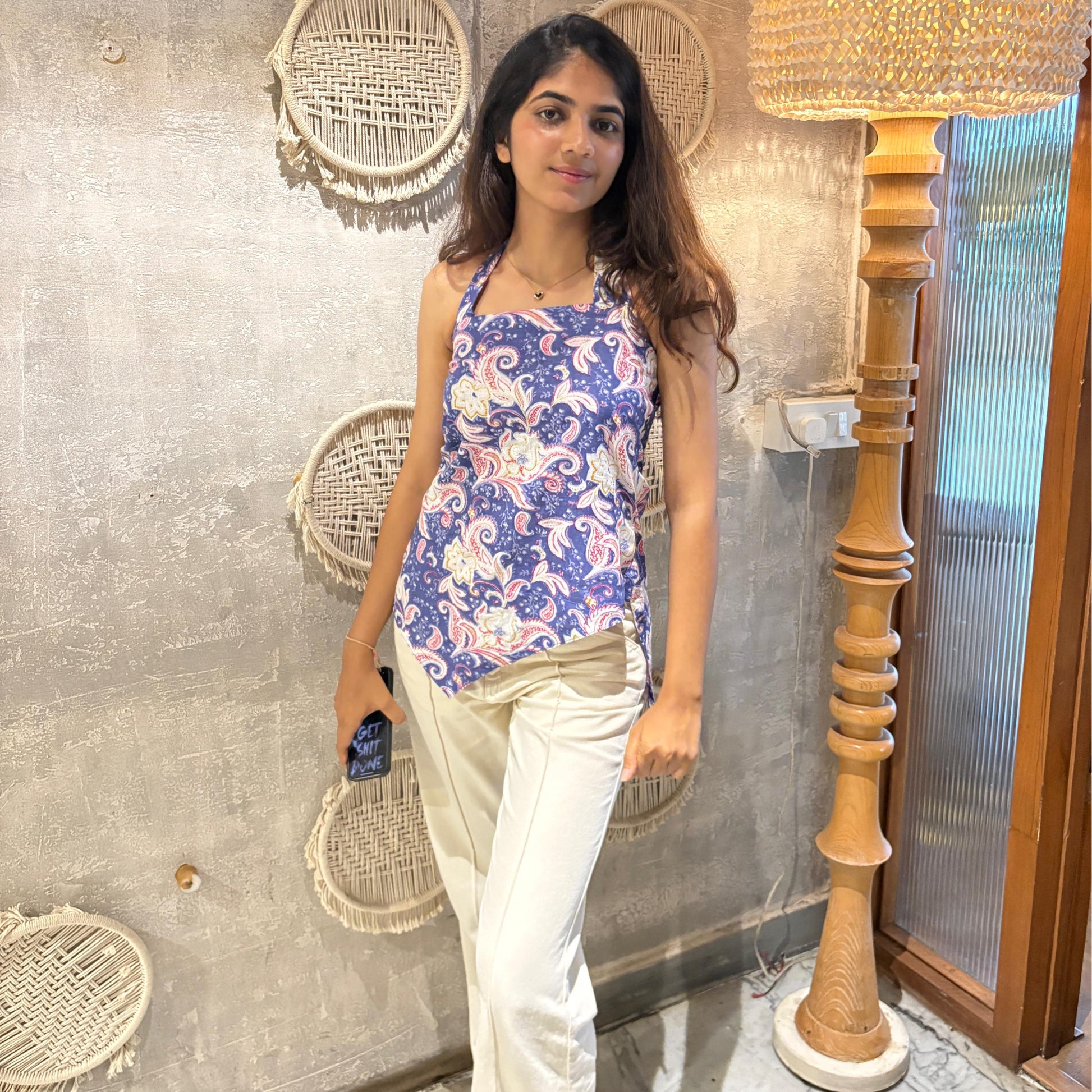 Break the mould with our Purple Halterneck Cotton Top , where traditional fabric meets a bold silhouette. Designed for the free-spirited and fashion-forward, this top features a unique halter neckline that adds an edgy twist to your ethnic wardrobe.